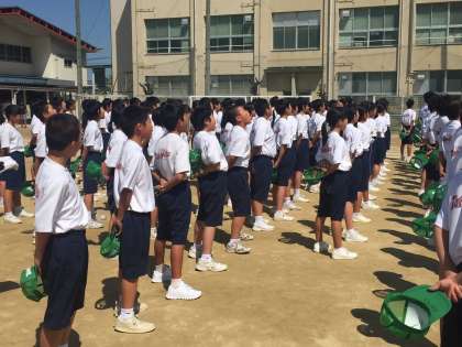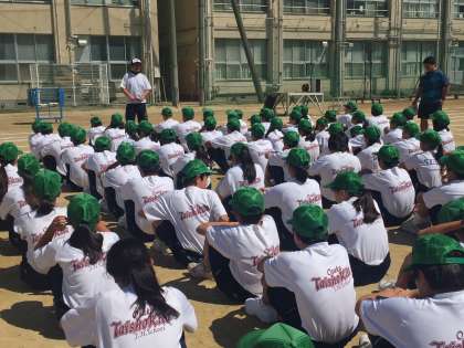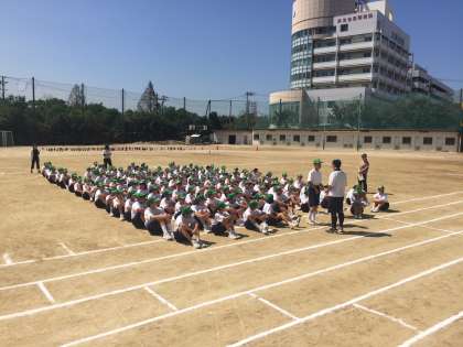 今週は先週とは打って変って気温が高めです。今日の3,4限目の体育大会1年学年練習では気温が上がってきているということで、PTAにそろえていただいた帽子を使っています。