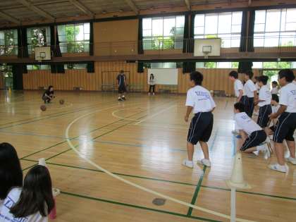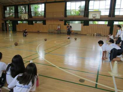 学年主任の熱い思いもあり、レクリーダーの先生の指導のもと、バスケットボールを使った「カーリング」が始まりました。