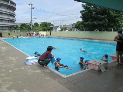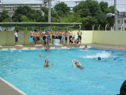 続いて、2年の水泳。プールが青々として、とても気持ちよさそうです。
