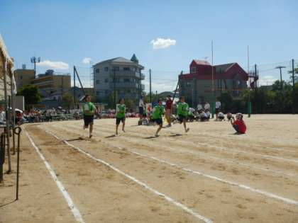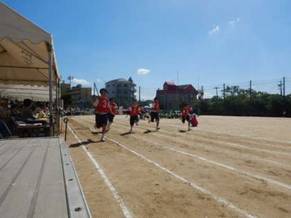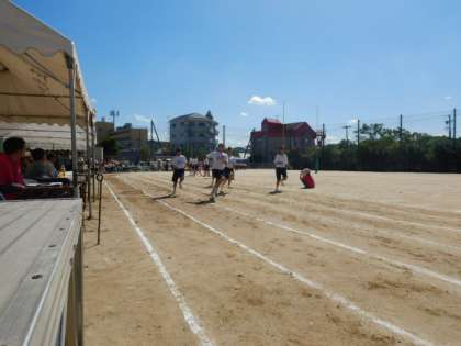 全学年男女による「50m走」です。短い距離なのでスタートが勝負です。
