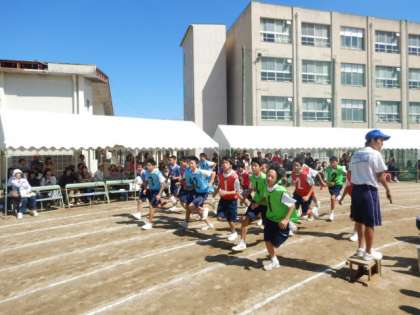 女子に続き、男子の800m走です。男子も3学年が同時にスタートします。