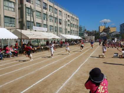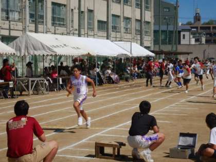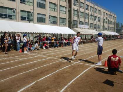 部対抗リレー男子の部です。序盤からバスケットボール部が抜き出し、途中から独走状態でゴールしました。
