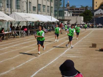 1年女子スウェーデンリレーです。走者ごとに走る距離が長くなってきます。