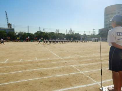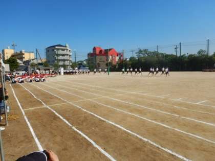 いよいよ最後は3年の「集団演技」です。みんなの期待を一身に浴びて3年生入場です。