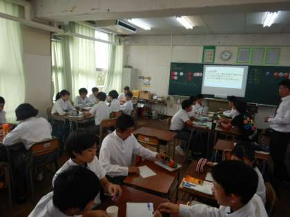 本日6限目に2年の研究授業を行いました。1,3年生は5限目終了後下校し、全教員で研究授業を参観しました。
