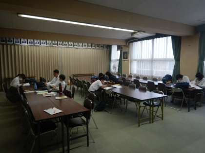 本日は全市教育研究発表会のため3時限目終了後に下校となりましたが、明日の中間テストをひかえ、学びサポーターによる学習会に参加している生徒もいます。13時まで勉強して下校します。