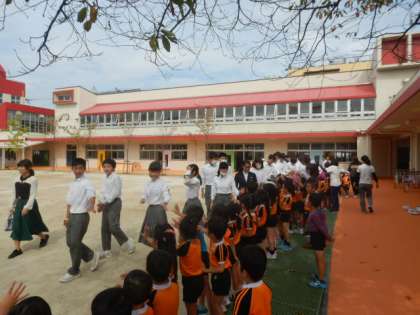 時間が経つのは早いもので、もう帰る時間です。こどもたちが元気に見送ってくれる中、生徒たちはとても名残惜しそうでした。ファミリーチシマのみなさん、どうもありがとうございました。