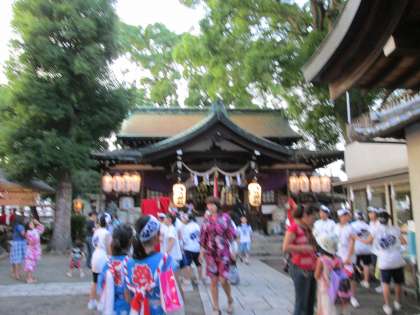 14日・15日は、校区にある下八阪神社の夏祭り。夕方近くまで雨が降り、心配されましたが、数多くの夜店も出て、子どもたちや家族連れで賑わっていました。