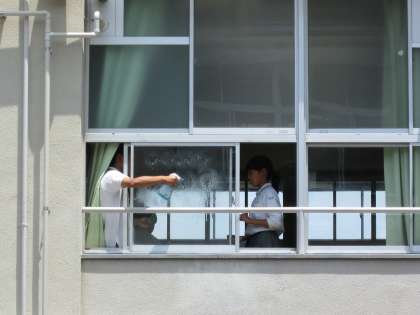 一方、3年の教室は、男女が協力して窓ガラスを磨いてくれています。透き通った窓ガラス。期待しています。