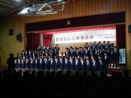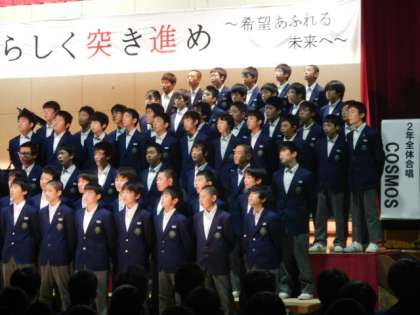 2年各学級の発表が終わり、最後に学年合唱をしました。