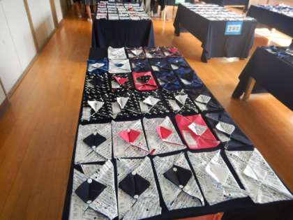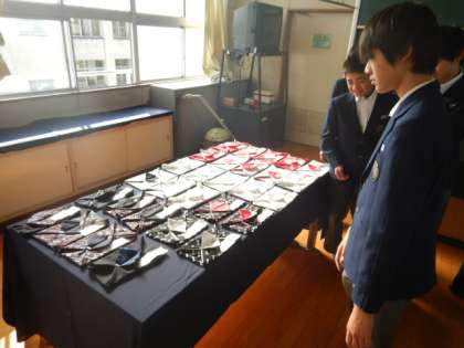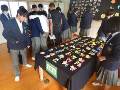 被服室では家庭科の授業でつくった各学年の作品や写真を展示しています。