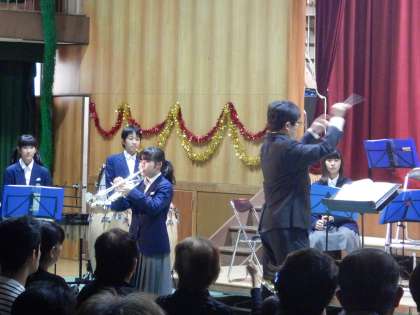 吹奏楽部の卒業生(高校生)が5名参加してくれました。