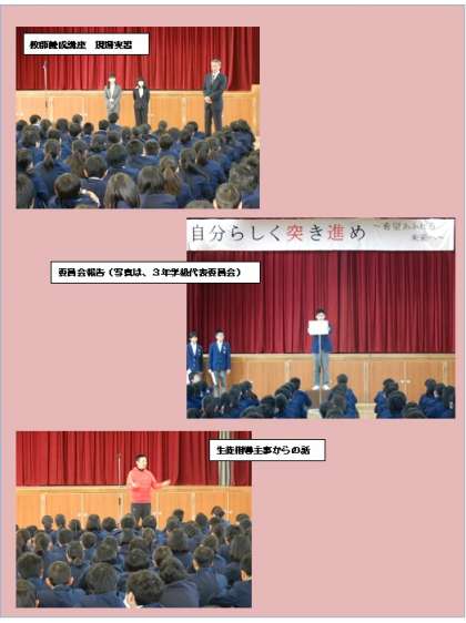 生徒会長から今週の予定の確認があり、最後に生徒指導主事