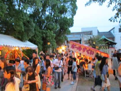 神社から商店街一帯にはたくさんの夜店が立ち並び、生徒たちはもちろん、家族連れや若者・お年寄りも、大勢の方が夏の夜を楽しんでおられました。