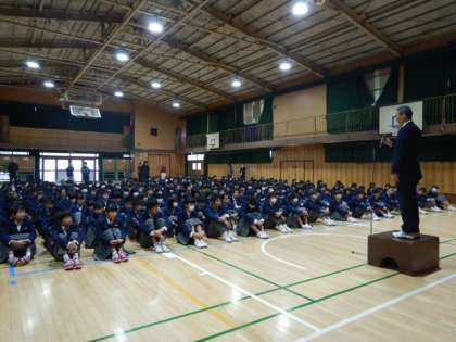 本日の朝の全校集会は、校長先生からは「世界人権宣言」のお話が、