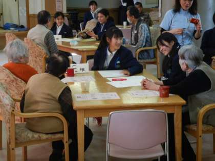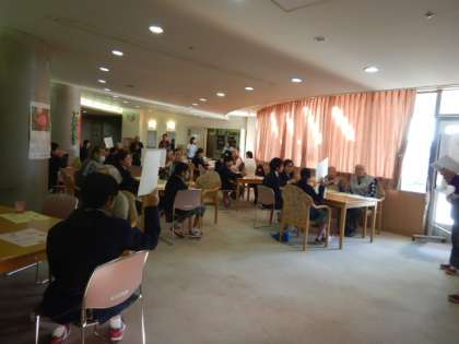 つつじ荘の方と本校生徒混合でテーブルに分かれ