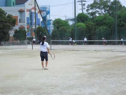 まずは、ソフトテニス部。こちらも肌の色はみんな褐色に。