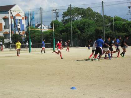 午前中は、近隣の昭和山坂道でのトレーニング。そして、午後からはグランドを使っての実戦練習。本日より、ラグビー部の二部練習が始まりました。