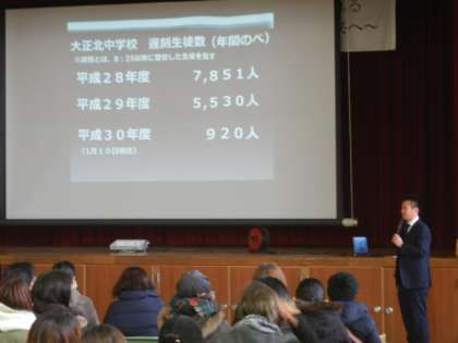 最後に生徒指導主事より中学校生活についての諸注意やきまりについて