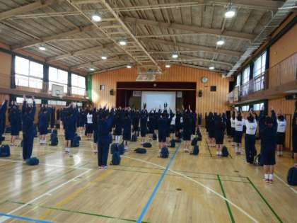 体育館で開会式ののち、準備体操をしてマラソン会場となる
