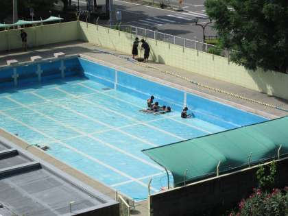 本日のプール清掃。午後から女子の運動部員が中心となって、プールをきれいに掃除してくれました。