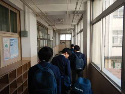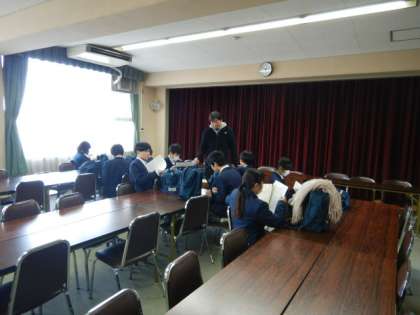本校では、給食終了後、特別選抜受検生徒が多目的室に集合し