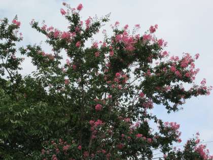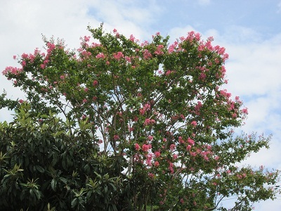 そして、正門横と南門横の大きな百日紅(さるすべり)は、ピンクの花が見頃となりました。