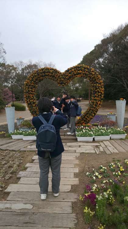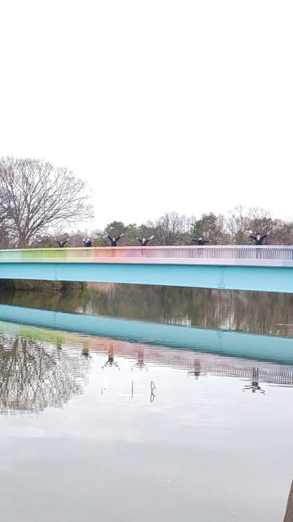 大池にかかる一文字橋にて記念の1枚。水面に反射してきれい!