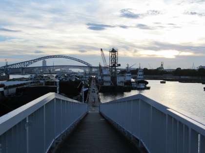 秋になると、手前の千歳橋、そして奥に見えるなみはや大橋に、太陽が沈むらしく、絶好の夕暮れロケーションになるようです。