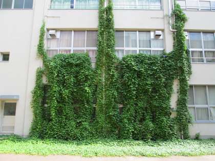 ところが・・・。その生命力は強く、枯れてしまうどころか、樋に沿って再び3階まで伸び、下も中庭に広がりつつあります。