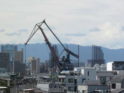 南側の大正内港では、船舶の行き来や造船所での船舶の修理作業、尻無川沿いでは大型のクレーンが操業しています。