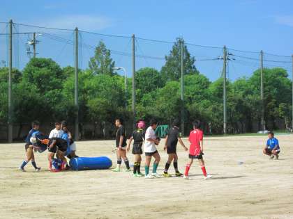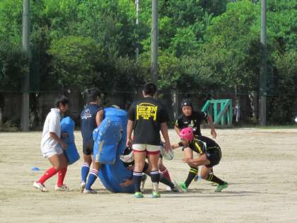 19日、男子バスケットボール部は練習試合に出かけ、そして、グランドではラグビー部の練習が再開されました。