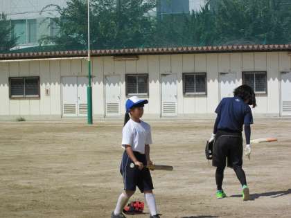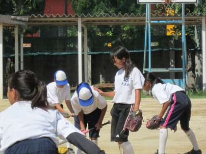日差しが益々強くなる中、ランニング・ストレッチを終えた、女子ソフトボール部の練習が始まりました。