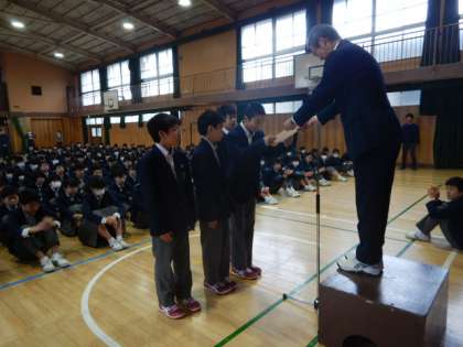 合同チームで出場し、3位となったバレーボール部の表彰がありました。