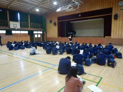 本日、体育館で3年生の一般選抜受検者を対象に