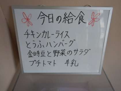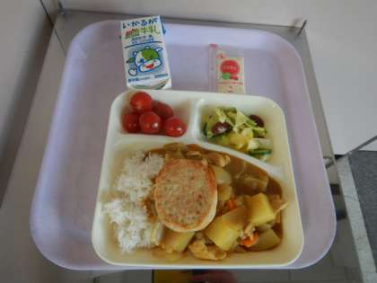 1,2年生だけの給食です。今日の献立はみんな大好きなカレーです。