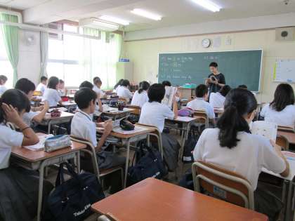 1年の授業では、生徒からの質問や、先生からの問いに答える生徒たちの様子を見ていると、とても活気があります。
