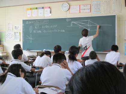 続いて理科の時間では、凸レンズの授業。焦点や光の屈折など、懐かしい言葉が出てきました。ポイントをしっかりと押さえましょう。