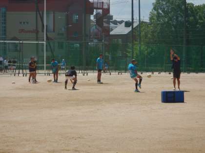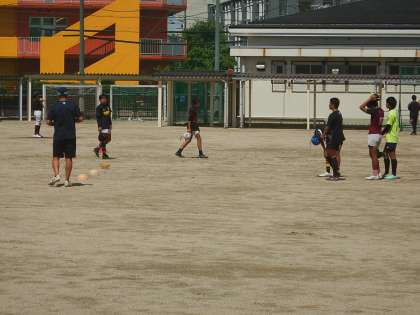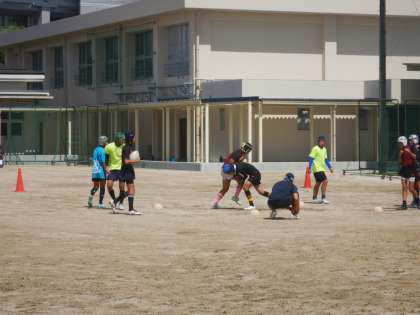 ラグビー部は、パス、キックの練習をしていました。タックル?は、けがに注意してね。