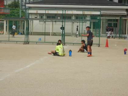 ラグビー部は、朝早くから短時間で練習を行っています。