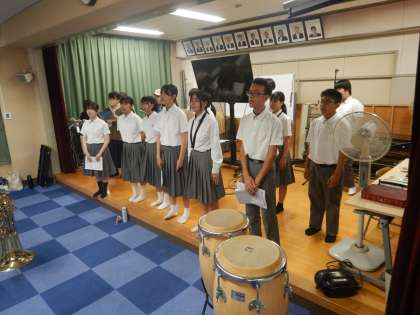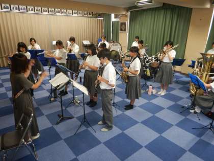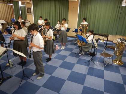 吹奏楽部は、8月3日(日)の万博での演奏会のため、練習を行っています。