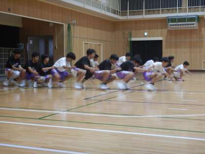 ボールを上下交互に渡していったり、むかで競争のようなことをしたり、、、。