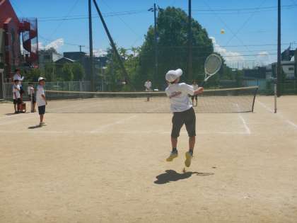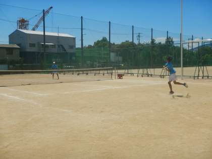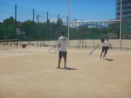 硬式テニス部が、思いっきりボールをたたいていました。