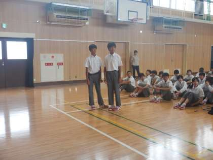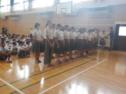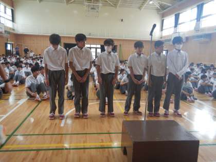男子テニス部のダブルス、男子バレーボール部、吹奏楽部の表彰がありました。吹奏楽部は、コンクールにて銀賞を受賞。次は金賞をめざすそうです。