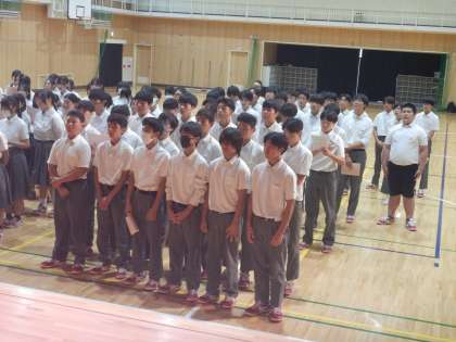 9月26日(金)予定の「第46回文化祭」に向けて、3年生が全体合唱の練習に入りました。