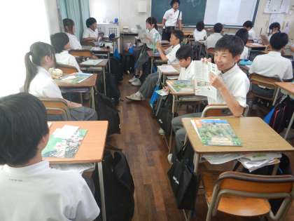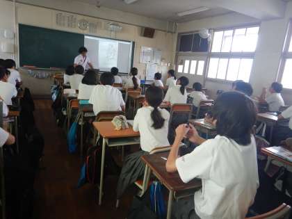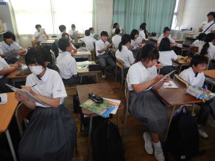 1年生の美術の授業の様子です。横にいる生徒の人物像を書く授業のようです。