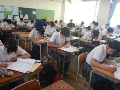 英語の時間は、プリントの返却から始まりました。多くのプリントが返却されました。たくさん勉強しているようです。