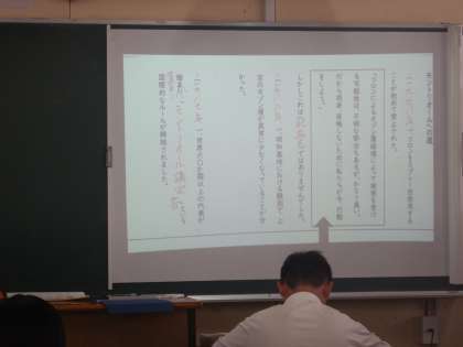 1・2年生は、5限目で下校し、先生方の授業研究を行いました。