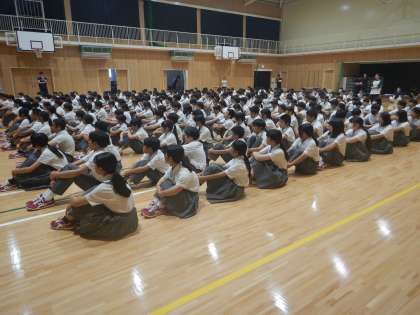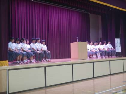 全校生徒が集まり、演説会が始まる準備が整いました。