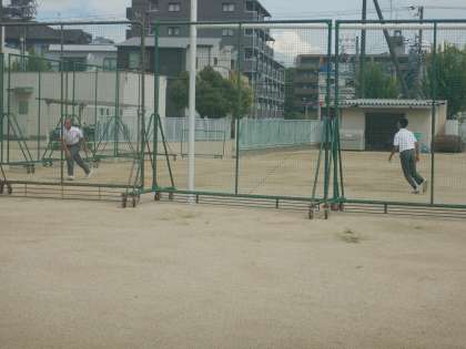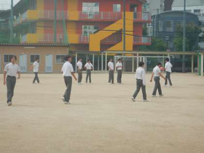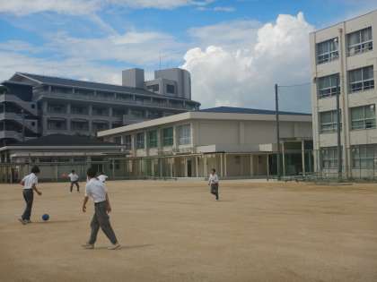 お昼時間に運動場に出てみると、数組の生徒集団が、ボール遊びをしていました。